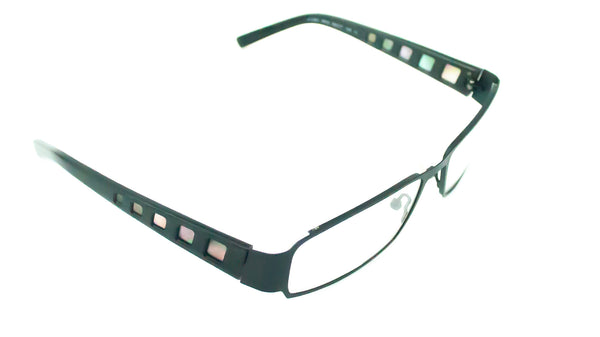 These new, JF Rey glasses frames have a stylish rectangular frame shape in black metal, lightweight and comfortable. Mother of pearl details along both temple sides add the stylish details JF Rey are known for. These glasses are incredibly well designed and include spring loaded hinges for ease of wear.