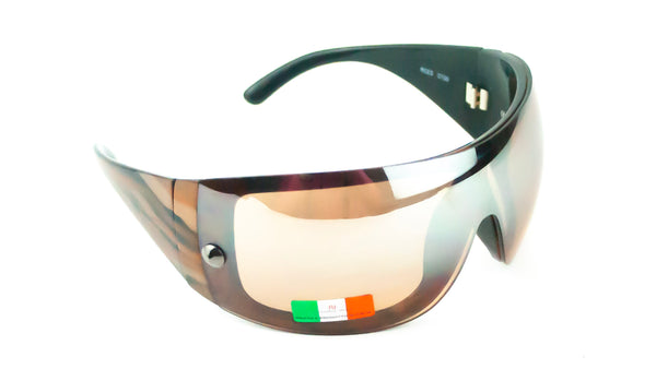 Made in Italy, these new, vintage sunglasses are a stylish brown and clear colourway in a wraparound visor style. New, old stock they have never been worn and are therefore in immaculate condition.